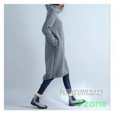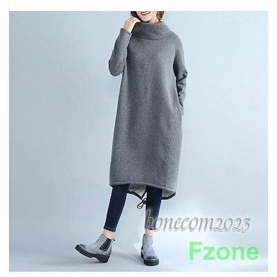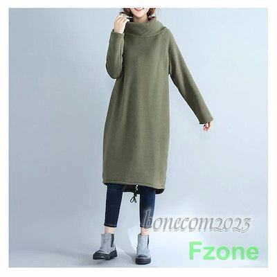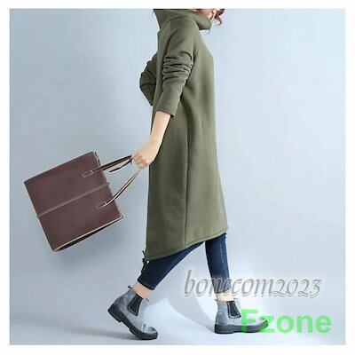 ワンピース レディース トップス 秋冬 着回し 裏起毛 ブラウス ハイネック 長袖 膝上 大きいサイズ ゆったり フラワーギャザー チュニック おしゃれ 30代 40代 5