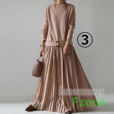 ワンピース レディース ニットトップス レイヤード風 ベルト付き マキシワンピース 長袖 秋冬 カジュアル きれいめ 通勤 旅行 お出かけ 30代