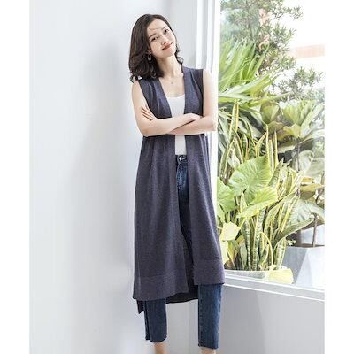 ベスト レディース ロング ジレ ノースリーブ サマージャケット カーディガン 袖なし ジャケット きれいめ トップス 羽織り 大きいサイズ