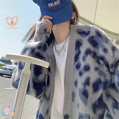 ヒョウ柄セーターカーディガンレディース秋冬韓国風ゆったりミドル丈レトロアウターセーター
