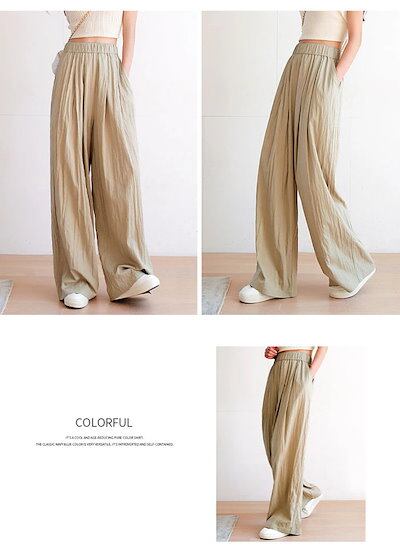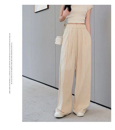 ワイドパンツ レディース 涼しい イージーパンツ ひんやり 涼しい 薄手 ロングパンツ UVカット ウエストゴム シワ バギーパンツ 大きいサイズ ゆったり 体型カバー リラックス サラサラ