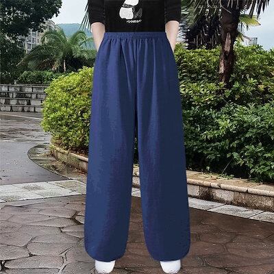 春と夏の綿とンのタイチパンツ男性と女性のルーズブルーマーン朝のエクササイズパンツフィットネスパンツヨガパンツ武道トレーニングパンツ