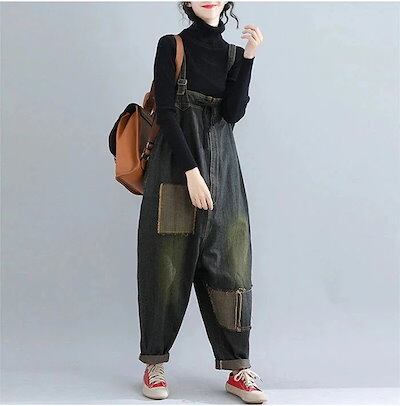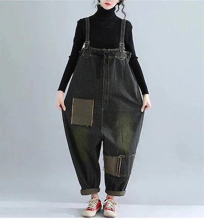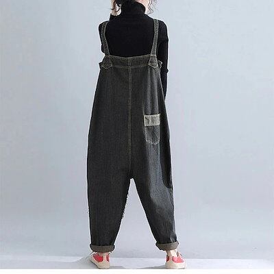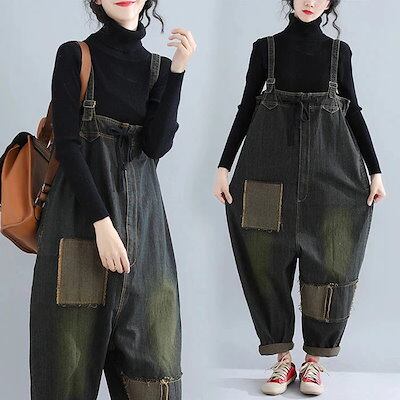 【3日で出荷】サロペット デニムサロペット オールインワン サルエルパンツ デニム レディース オーバーオール ワイド ロング 秋冬 大人 パンツ きれいめ カジュアル ゆったり目