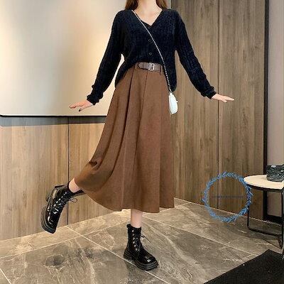 フレアスカート ロング レディース Aラインスカート ハイウエスト 秋冬 ロングスカート マキシ丈 ウエストゴム 春 マキシ丈スカート