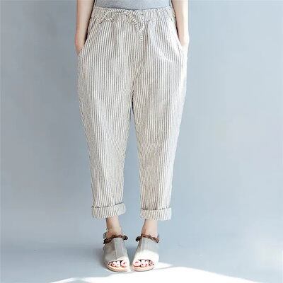 ボトムス 涼しい カジュアル ストライプ サルエルパンツ ゆったり パンツ レディース サルエル 7分丈