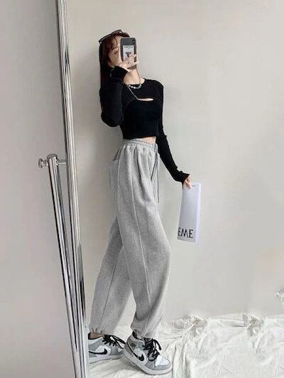 ワイドパンツ ライトグレー スウェットパンツ レディース 秋新作 ドローストリングパンツ カジュアル ワイドパンツ