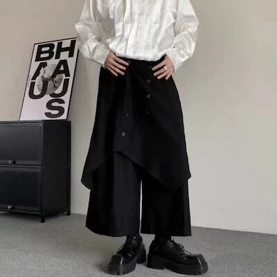 ワイドパンツ メンズ レディース サルエルパンツ ゆったり ロングパンツ 男女兼用 アシンメトリー 舞台 ダンス 衣装 カジュアルパンツ ズボン