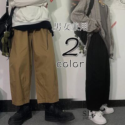 パンツ レディース メンズ ワイドパンツ カジュアパンツ ズボン 無地 ウエストゴム 衣装 男女兼用