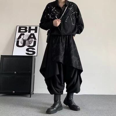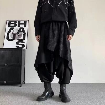 ワイドパンツ サルエルパンツ メンズパンツ レディース カジュアル ゆったり 大きいサイズ ロングパンツ 変形 アシンメトリー ズボン ウェストゴム