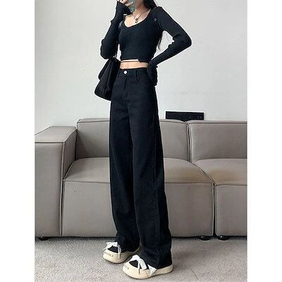 デニムワイドパンツ 秋新作 ワイドパンツ ジーパン 垂下感 簡単な カジュアル 韓国ファッション 百掛け やせて見える