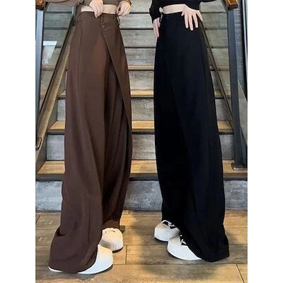 2024韓国ファッション 春夏パンツ ワイド ストレート脚長効果 美脚効果 細見え
