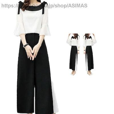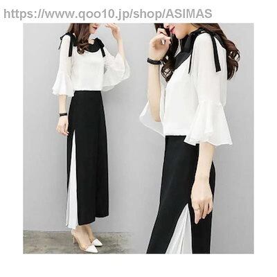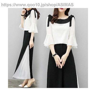 ワイドパンツ二点セットレディース春夏シフォンブラウス半袖シフォンワイドパンツセットアップリボンプリーツパンツおしゃれパンツセット無地シンプルフォーマルカジュアルおしゃれ