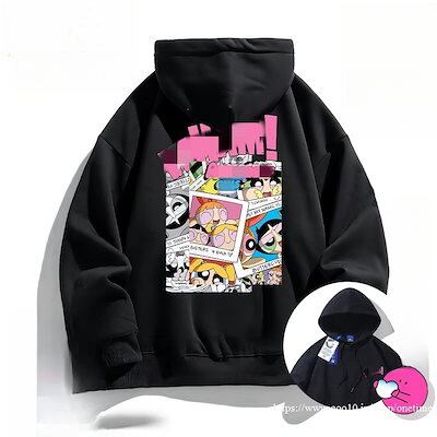 韓国 パワーパフガールズ 可愛い ゆったり トップス カジュアル プリント 男女兼用 ペアルックパーカー/レディースパーカー ルームウェア 長袖パーカージャケット/ア