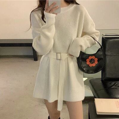 秋冬ファッション ニットワンピース レディース 春 ニュースタイル 怠惰 着痩せ 高級感 長袖 チュニック プレゼントベーシック ニット ロングセーター 韓国ドレス