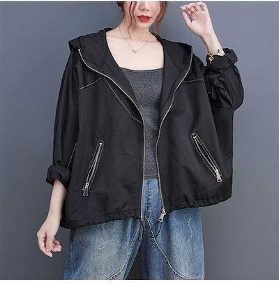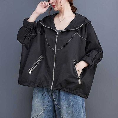 「ファットガール」 2024秋新品 ファスナージャケット 大きいサイズ パーカー フード付き ポケット付き 体型カバー レディース アウター マウンテンパーカー メガ割