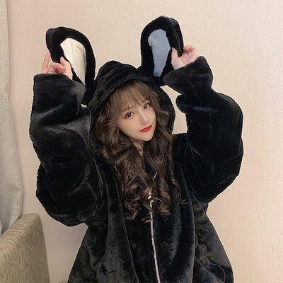 うさ耳ファーコート 病みかわ ゆめかわ ブルゾン 量産型 地雷系 トラバス レディース 厚手