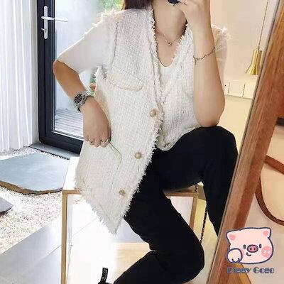 ツイードベストジャケット レディース 40代 大きいサイズ Vネック ジレベスト ツイードジャケット 春 秋 大人韓国風 通勤 卒業式 入学式 入園式 服装 母 30代
