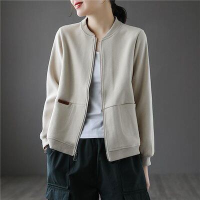 2024 レディースファッション 秋 ジャケット アウター ブルゾン長袖ライト ジャケット無地スウェット ショート丈春大きいサイズ
