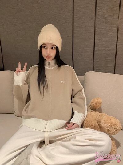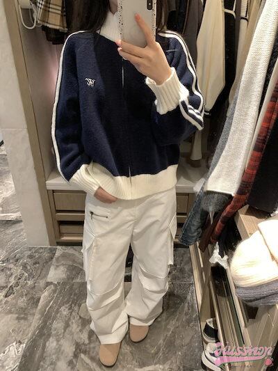 アウター レディース BF風 カレッジスタイル ブルゾン 長袖 秋冬 きれいめ ニット 華奢見え 可愛い おしゃれ メンズライク カジュアル 学生 シルエット サイズ スタイルアップ 春 色っぽ