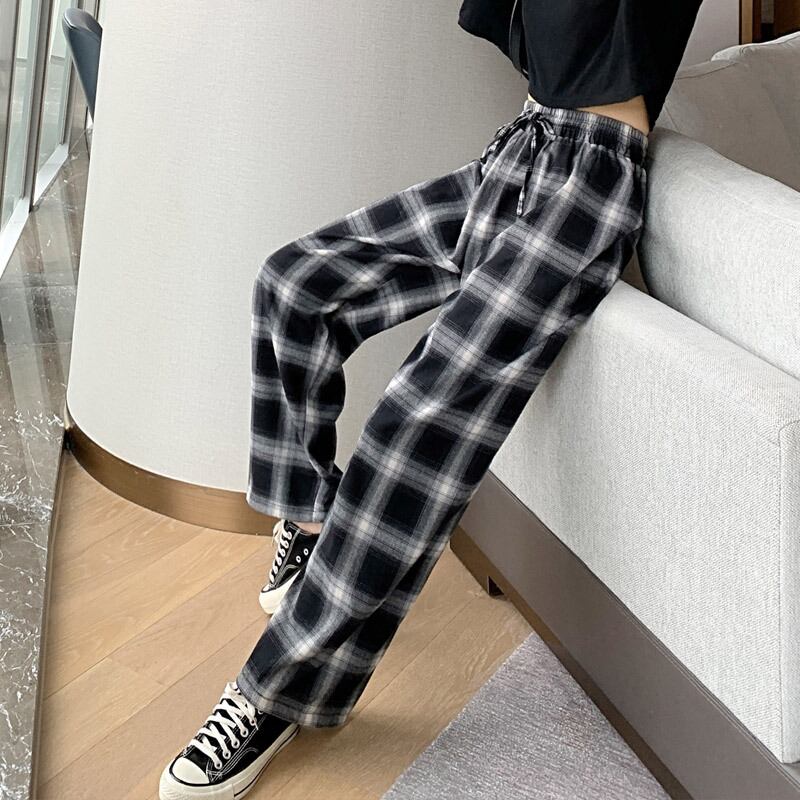 ワイドパンツ チェック 格子柄 ガウチョ ギャザー ゆったり ロングパンツ ボトムス タータンチェック