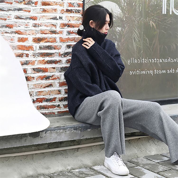 お時間限定SALE ニット スラックス 秋冬 ハイウエスト ゆったり ミニマリスト ワイドパンツ 女性