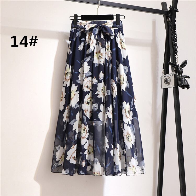 スカート 花柄スカート ロングスカート ボトムス レディース ウエストゴム リボン 全17色