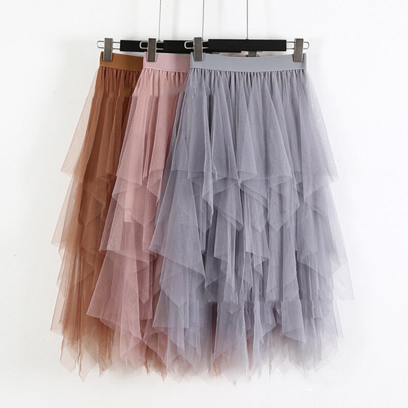 2024年秋新作 スカート メッシュスカート レディース ボトムス ウエストゴム 不規則デザイン 気質 可愛い