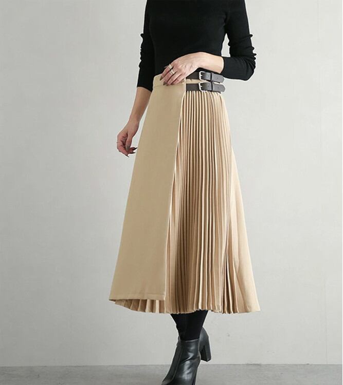 『 唯一のプリーツ 』スカート プリーツスカート 半プリーツ レディース ボトムス ロングスカート