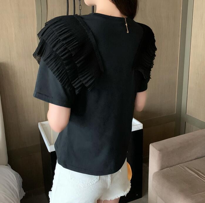 2021新作 Tシャツ フレアtシャツ シフォン ラウンドネック 半袖 レディーストップス 可愛い カジュアル
