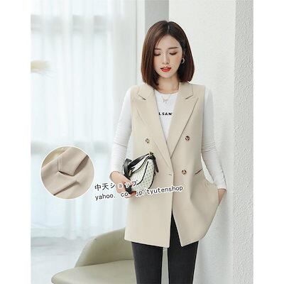 新作 トレンド スーツベスト ジレ レディース テーラード 前開き フォーマル ジレベスト コート ダブルブレスト アウター オフィス 膝上 ゆったり おしゃれ 春秋 着痩せ 通勤