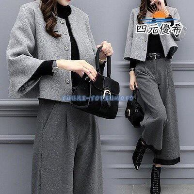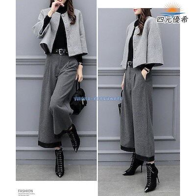 無料限定!【毎日厳選 】 セットアップ レディース 40代 20代 フォーマル 長袖 2点セット アウター 冬コート ガウチョパンツ カジュアル 大きいサイズ おしゃれ 着痩せ OL
