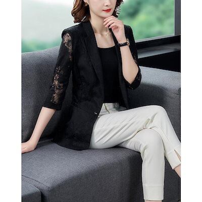 テーラードジャケット レース レディース カジュアル スーツジャケット コート ウェア フォーマル 着痩せ おしゃれ 通勤 春秋新作