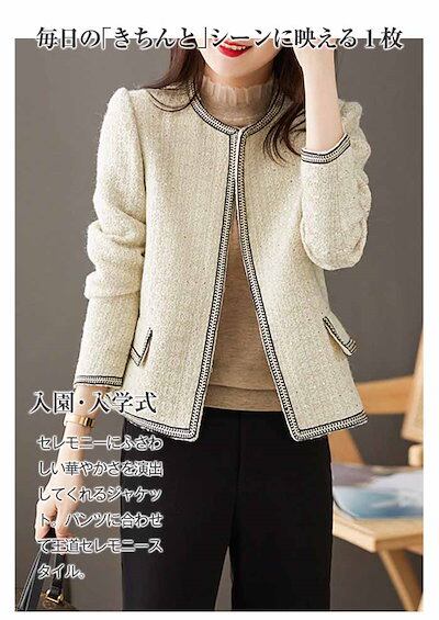 ツイード ジャケット ノーカラー 大きいサイズ レディース 卒園式 入学式 長袖 ツイードジャケット ママスーツ フォーマル アウター きれいめ 結婚式 オフィス セレモニー 母 卒業式 入園式 七