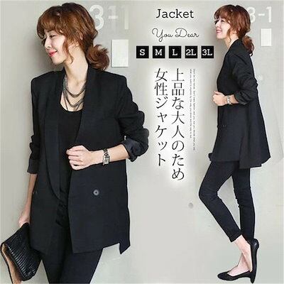 ジャケット ロング レディース テーラード 長袖 ライトアウター ロングジャケット 体型カバー フォーマル スーツ 黒 ブラック シンプル オフィス 通勤 OL お呼ばれ ビジネス 春 秋 きれいめ