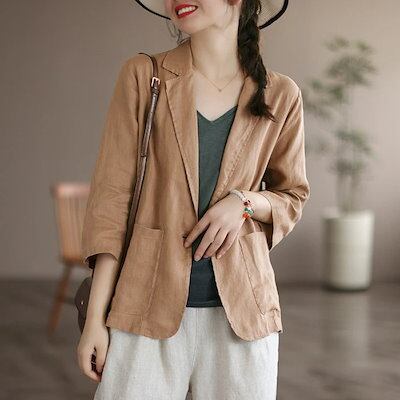 ジャケット レディース スーツ フォーマル アウター 綿麻風 春 秋 軽量 ショート丈 七分袖 7分袖 ビジネス オフィス カジュアル 大人 大きいサイズ 通勤 仕事 体型カバー 着痩せ 上着 白 黒