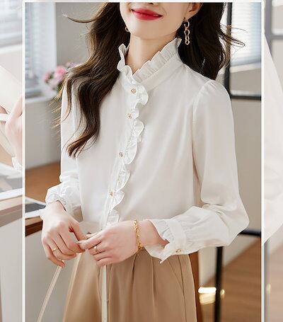 シャツ レディース おしゃれ シャツ ブラウス 長袖 スーツ インナー 白シャツ トップス フォーマル 無地 ホワイト 白 オフィス ビジネス 立ち襟 春秋 通勤 ワイシャツ カジュアル OL おしゃ
