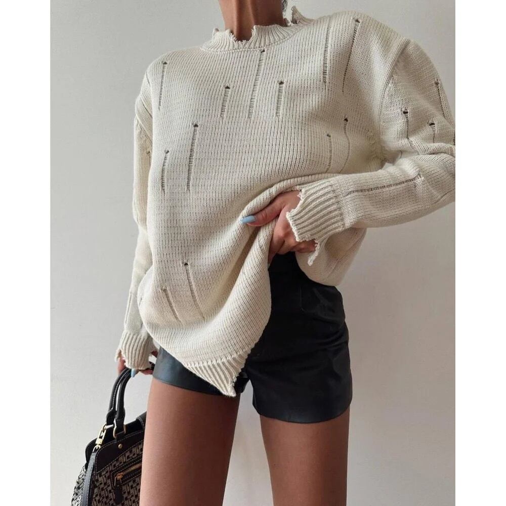 女性用長袖破れたセーター、カジュアルニットプルオーバー、Oネックジャンパー、ヴィンテージトップ、カップル服、売れ筋、y2k パーカー ジャージ y2k T240908141540_02