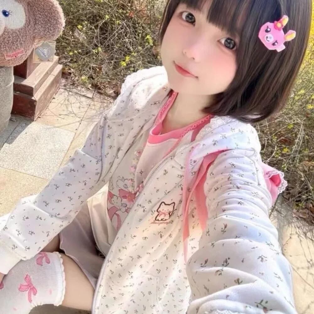 女性用和風フローラルフーディージャケット、y2k、e-girl、長袖、ジッパーカーディガン、ルーズコート、ミッドレングススウェットシャツ、かわいいコート、新しい、2024 パーカー ジャージ y2k T240908141609_01