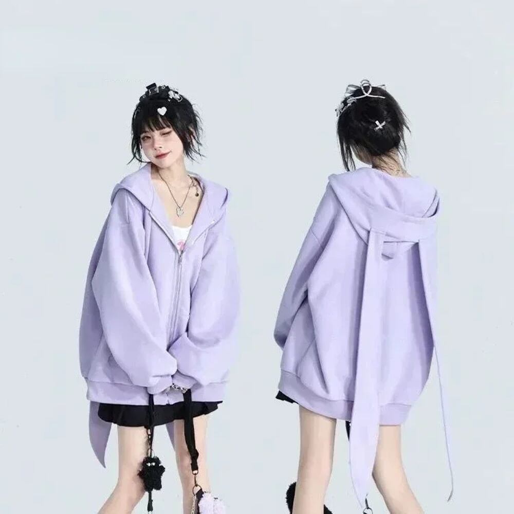 女性用カワイイビナイヤーフーディー、日本のトレーナー、ジッパーカーディガン、ヴィンテージ冬服、カジュアル、多用途キュート、ルーズy2kコート パーカー ジャージ y2k T240908164215_03
