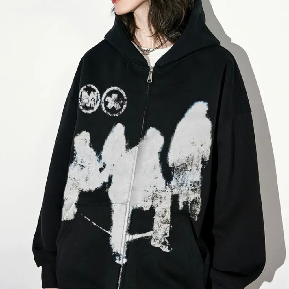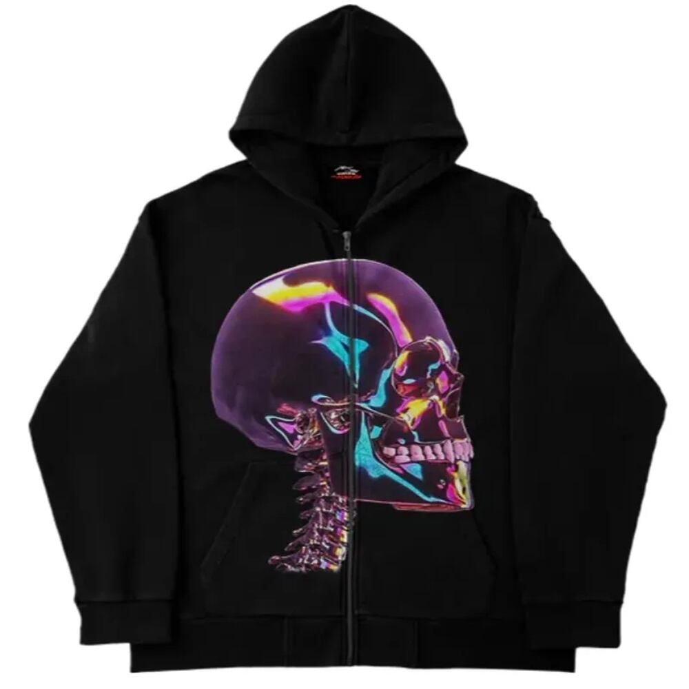 女性用長袖スカルプリントプルオーバー、特大スウェットシャツ、カジュアルトップ、ヴィンテージ、ストリートウェア、ダーク、ジッパー、冬、y2k、2024 パーカー ジャージ y2k T240908164254_01