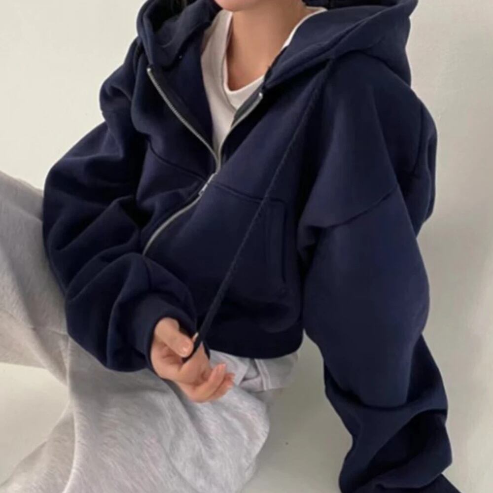 女性用カジュアルジップアップパーカー、無地、ルーズクロップトップ、ストリートウェア、スウェットシャツ、韓国フード付きジャケット、コート、y2k、秋、冬、2021 パーカー ジャージ y2k T240908164403_03