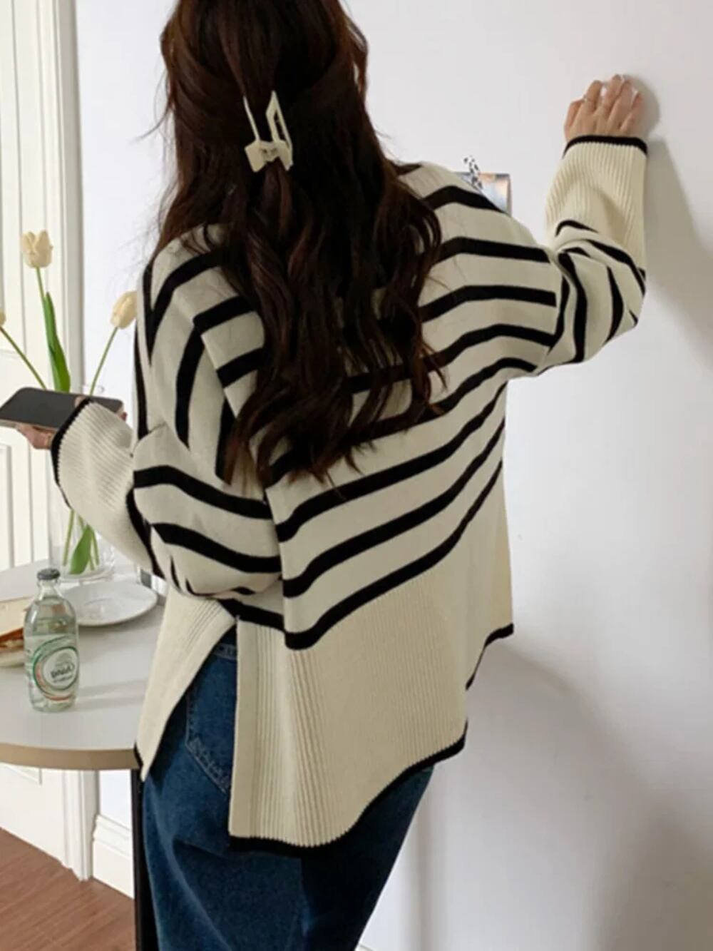 女性のストライプのジャンプスーツ,y2kの服,韓国のトップス,タートルネック,ジャージー,秋冬 パーカー ジャージ y2k T240908164420_01