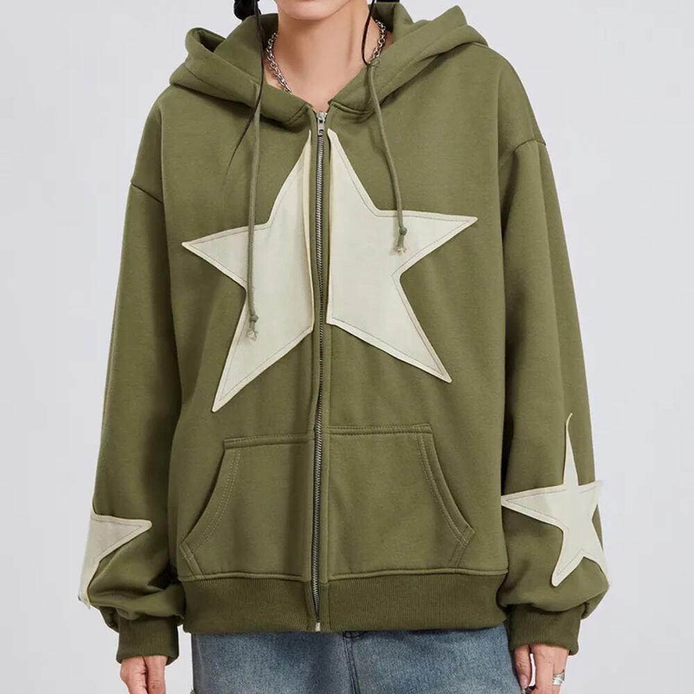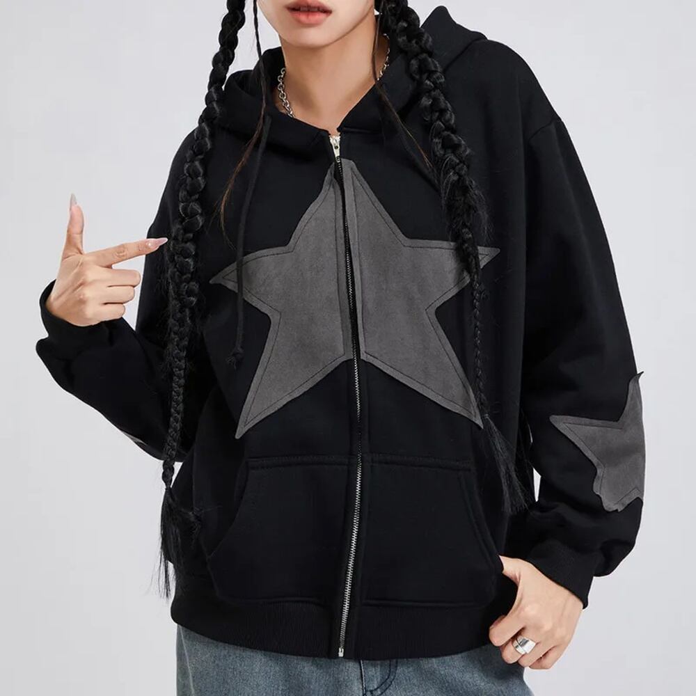 女性用長袖スタージップアップドローストリングパーカー、女性用衣類、ストリートウェアコート、春と秋の服、y2k パーカー ジャージ y2k T240908164510_01