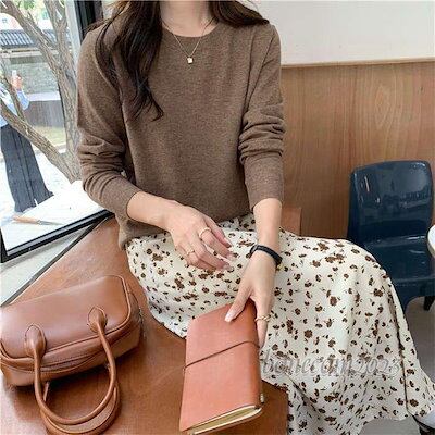 長袖 トップス レディース カジュアル 大人可愛い セーター ニット ベース 秋 代 カットソー 秋冬 おしゃれ きれいめ 無地 春 色 ニット