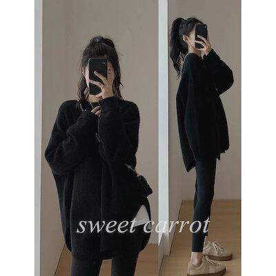 フリーサイズ 伸縮性あり レディース 着やすい 秋冬 長袖 ゆったり アウター カジュアル インナー 色 代代 ニットセーター