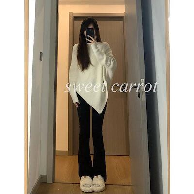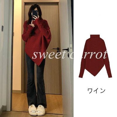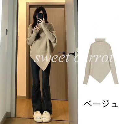 着やすい レディース セーター ゆったり 不規則 長袖 ニットセーター 無地 トップス タートル襟 秋冬 大人 マント