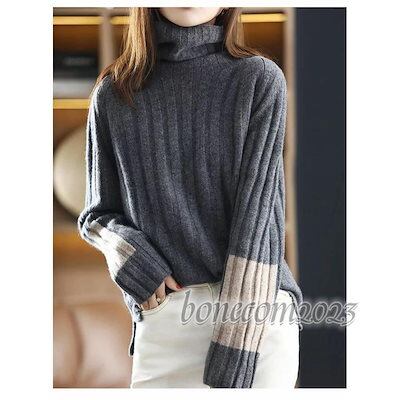 代 おしゃれ プルオーバー セーター 体型カバー 着痩せ 通勤 ゆったり ニットトップス ハイネック 厚手 レディース 秋冬代長袖