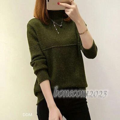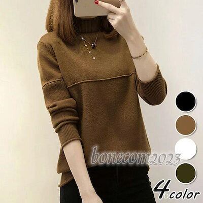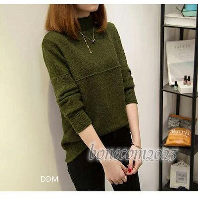 ニットトップス 秋冬代長袖トップス プルオーバー ハイハイネックニットインナー 韓国風 大人可愛い レディース ゆったりセーター 無地ニットトップス オシ