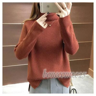 ショート丈 秋冬代トップス 韓国風 長袖 ハイネック ニットソー ニットトップス セーター セーター 通勤 オシャレ ゆったり 無地 ニットセーター レディース