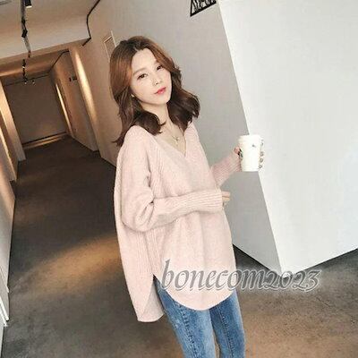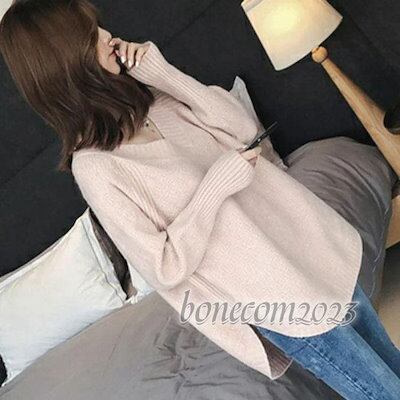 色 ゆったり 長袖 韓国風 無地 ニットトップス ニットソー ニットセーター 通勤 厚手 セーター ネック 着痩せ レディース ショート丈 秋冬代トップス
